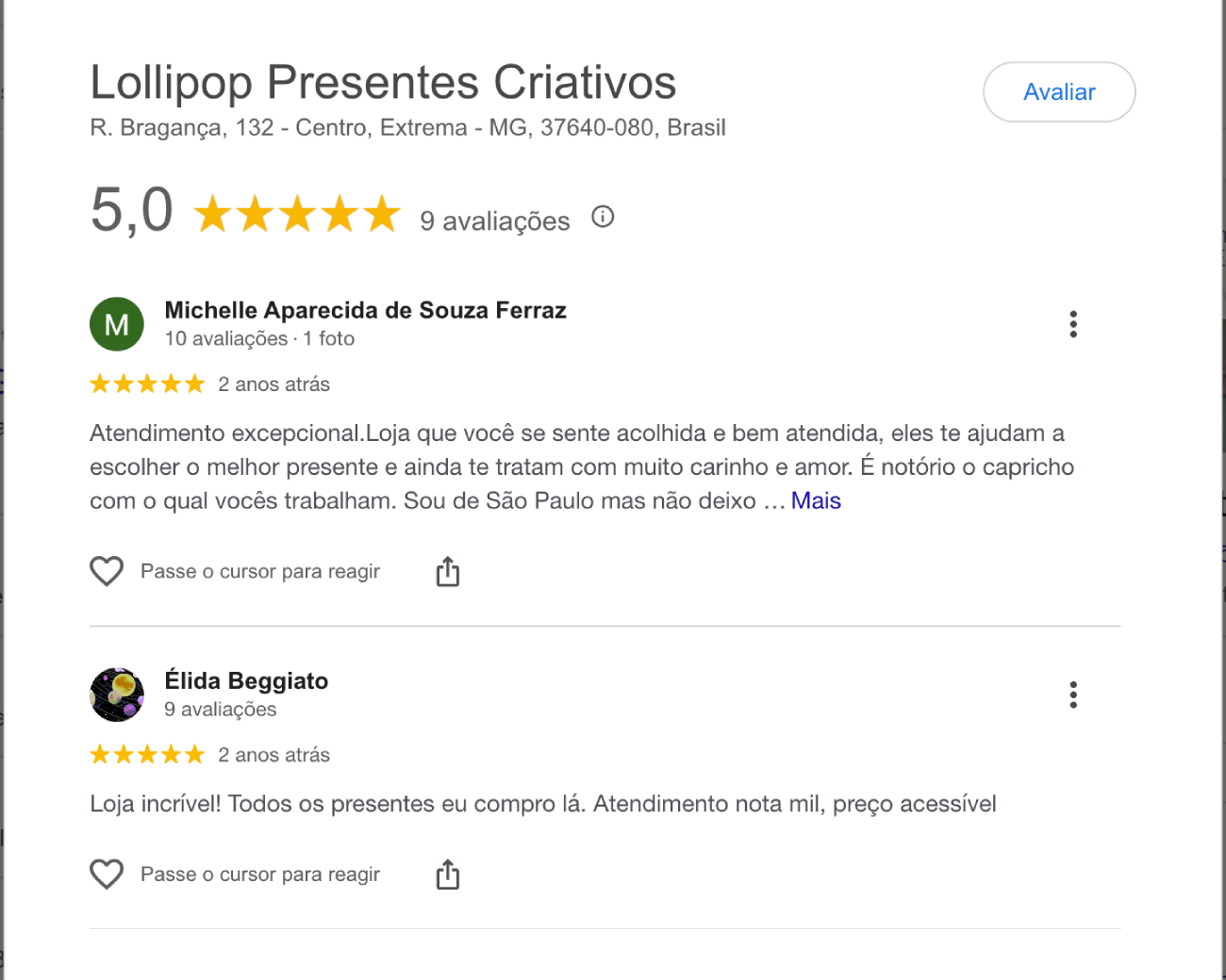 A Lollipop Presentes acumula diversas avaliações positivas no Instagram, Google e na própria loja. Os clientes sempre destacam: